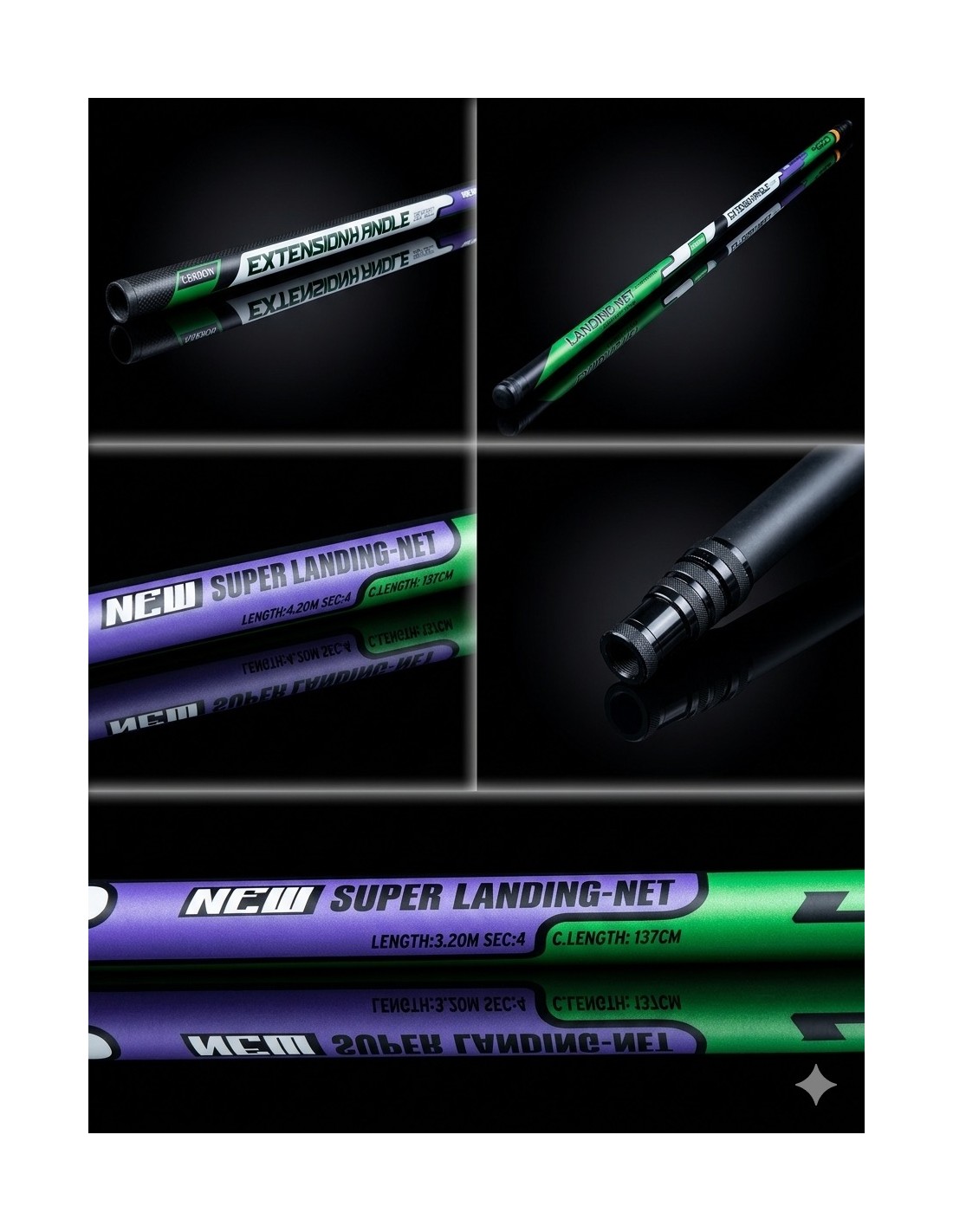 Teleskopinis. Ilgis 3,2m. Svoris - 209gr. Transportavimo ilgis - 135cm.
