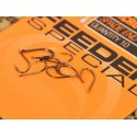 Kabliukai GURU FEEDER SPECIAL - skirti žvejybai dugnine meškere. Su mikro užkarpėle. Specialaus lenkimo. Šie kabliukai giriami žvejų profesionalų forumuose. Tvirtinimas prie valo - lopetėlė. Pakuotėje 10 vnt. Spalva - tamsi bronzinė.