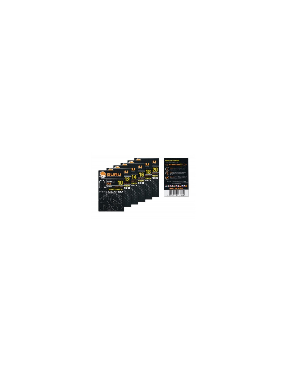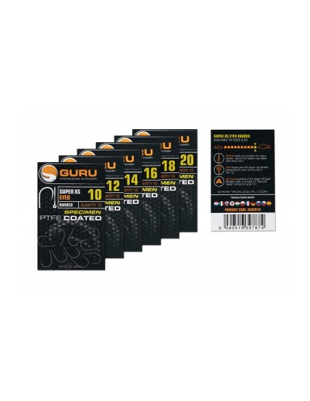 Kabliukai GURU Super XS SPECIMEN su užkarpa ir su kilpele pririšimui. Pakuotėje 10 vnt.