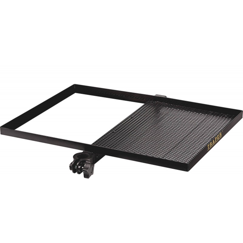 Traper masalų staliukas su vieta indui- tvirtas ir patikimas. Tinka 25, 36 mm platformos ir kėdės kojoms. Matmenys: 49cm X 51 cm. Viena puse tvirtinasi prie paltformos. Be indo.