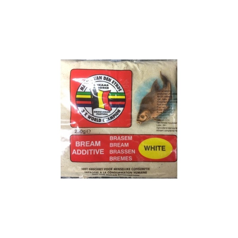 VDE priedas Brasem White - anyžiaus kvapo, saldus sausas jauko papildas, naudojamas karšių, karpių, kuojų ir visų kitų rūšių karpinių žuvų žūklėje. Naudojamas šiltame ir šaltame vandenyje. Dėti į jau sudrėkintą jauką prieš pat žūklę. Pakelio pakanka 5-6 kg jauko. Šį papildą galima naudoti kaip priemonę, suteikiant jūsų masalams skonį bei kvapą (musės lervoms, pinkoms). Pakuotėje - 250 gr.