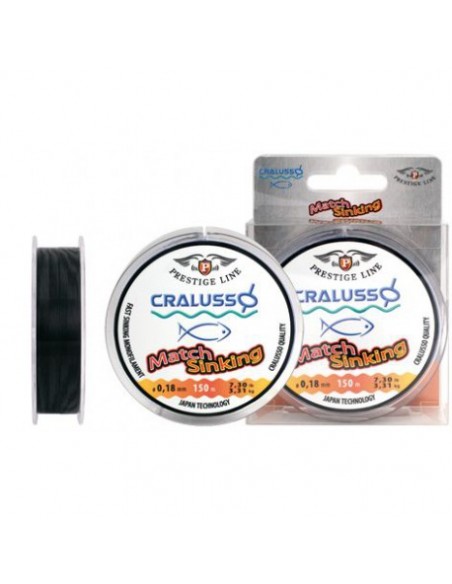 Skęstantis monofilamentinis valas Cralusso MATCH Sinking - monofilamentinis skęstantis valas plūdinei. Patogus rišti šoklyderiam arba naudoti kaip įprastą mono valąJuodos spalvos, todėl vandenyje beveik nematomas, gerai laiko mazgus, ilgaamžis. Ilgis 150m.